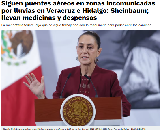 Durante su conferencia matutina del 7 de noviembre, Sheinbaum actualizó el panorama: