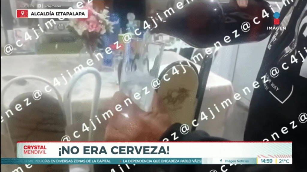 Una vez que los estafadores se retiraron, el comerciante comenzó a acomodar las caguamas en los refrigeradores. Fue entonces cuando notó que algunas botellas se sentían más ligeras de lo normal. Al vaciar una en un vaso, descubrió que el líquido era transparente y espumoso: agua con jabón3.
